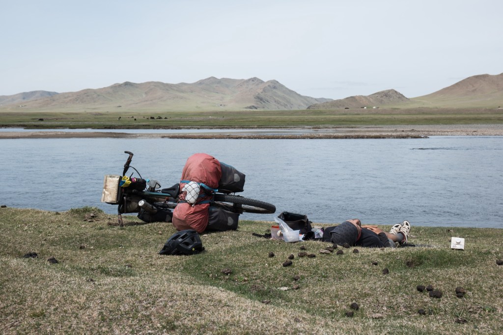We set our tent at a superb camp spot close to the river Tuul. Filter 5 bottles of water (better safe than sorry) and arrange the bags – this will become a daily routine. Filtering or cooking the water is absolutely necessary here, the rivers are broad and flow semi fast but they are surrounded with herds. By the amount of cadavers we smell and see, the water doesn’t feel super safe to drink without any typ of filtration.