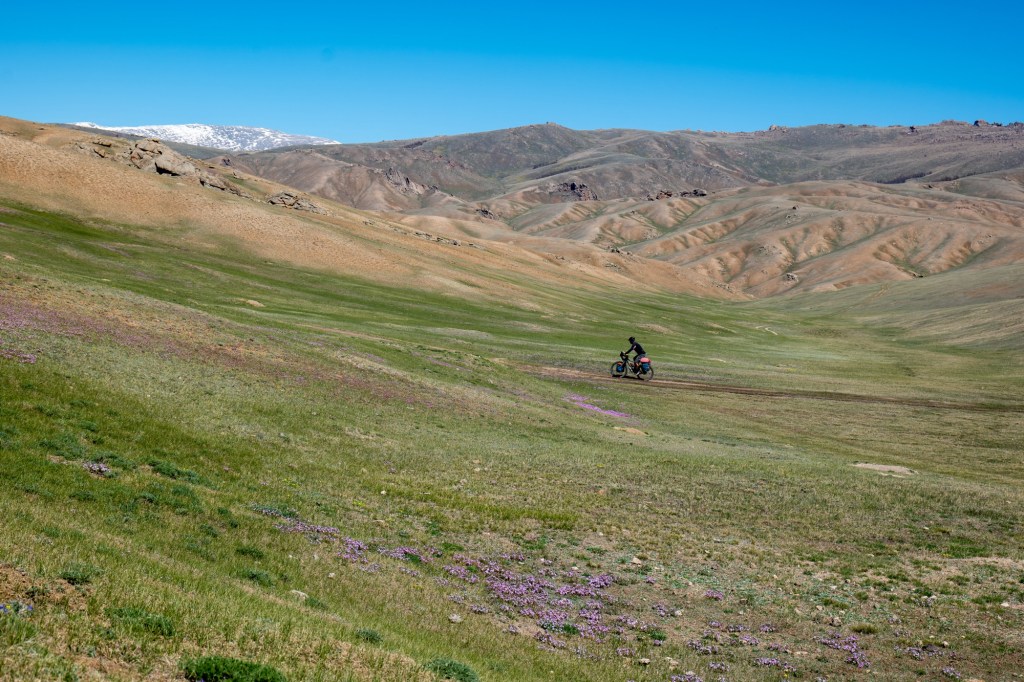 Last push to the pass – and we look down the valley, the snow capped mountains standing in a blooming flower field. What a day! The next morning we descent the last 40km towards Uliastai, first 10ks flow easily then follows a typical “straight” dirt road next to a river. Lush and oh so green trees appear – flowers bloom and Uliastai appears in the distance. We are ready for a late breakfast and a coffee!