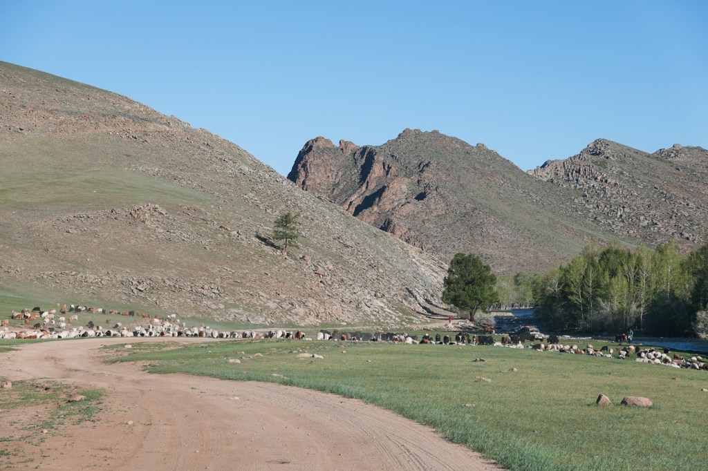 Westwards from UB we first follow a busy road southwest, which become smaller as the landscapes become wider. Fewer cars more gers more herds.