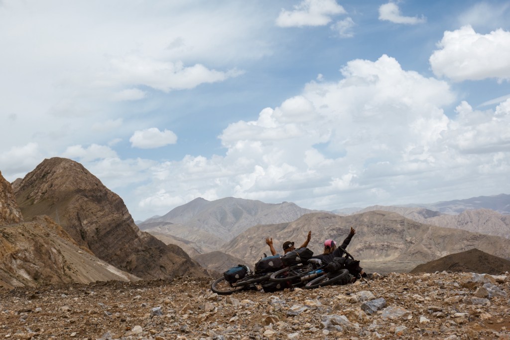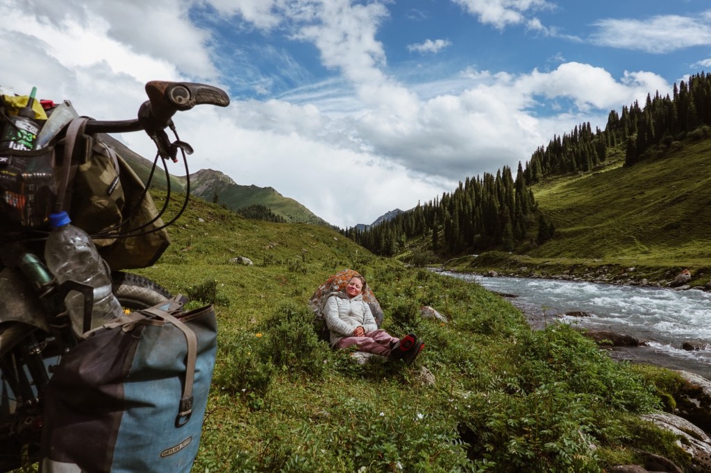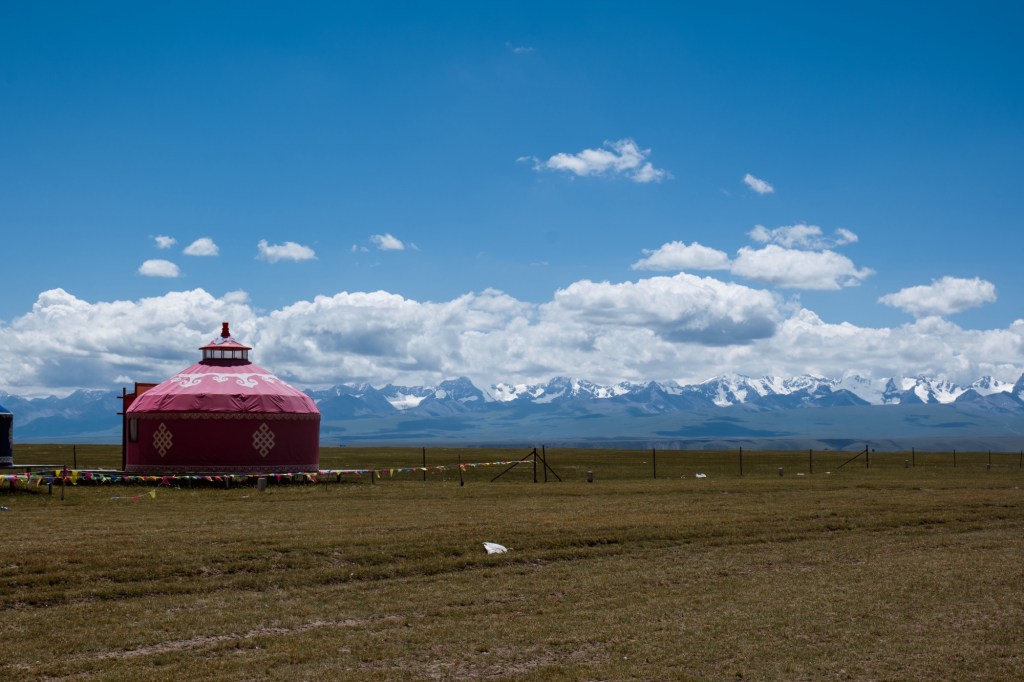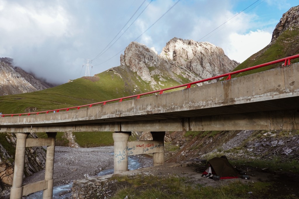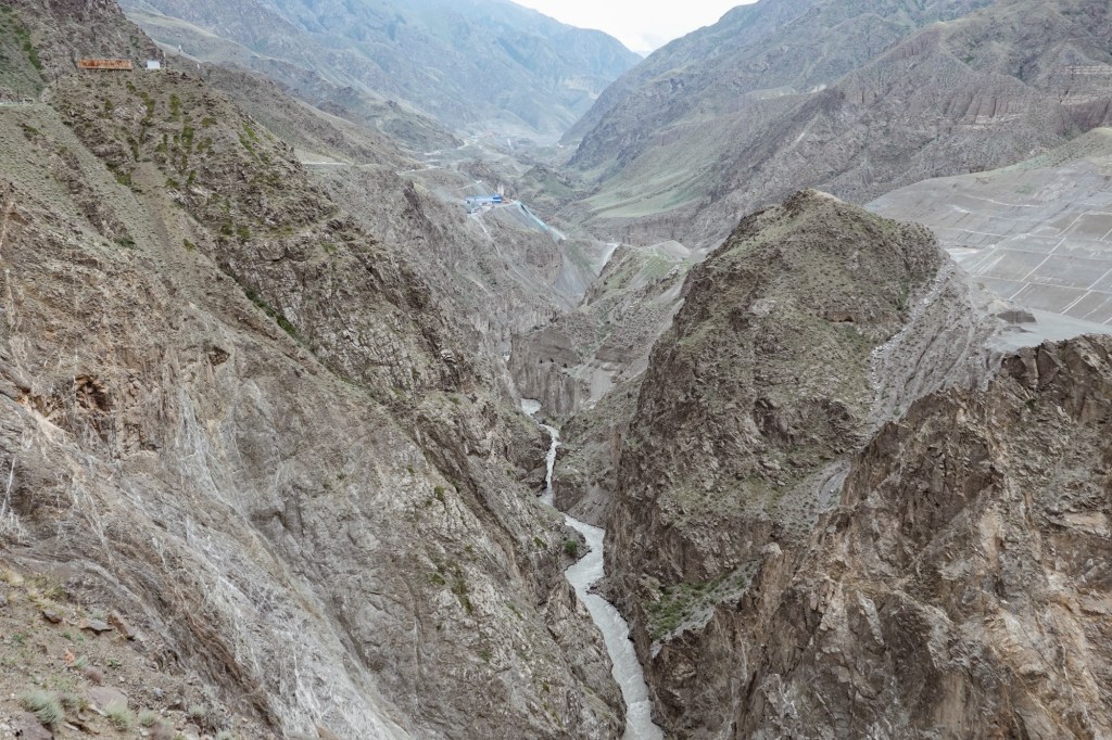 We drive a few kilometres on the S101 a scenic road at the foot of the mountains with amazing landscapes. The next day we encounter one more roadblock and we head back into the valley with disappointment. After the unplanned detours we take the western most road to cross the mountains and follow the „most beautiful road“ of China (the G217) which indeed was spectacular winding through canyons, meadows and via 3000 meter passes – leading towards the way where we were supposed to head to further in the east. Spectacular, yet, overcrowded with cars and we experience a few very uncomfortable passing and overtaking manoeuvres. It was the start of the holiday season in China and so many local tourists roamed to the region to rent SUVs or Jeeps. On the bright side we meet a lot of local cyclists – apparently it is a big thing to conquer this road 🙂 who knew! Gladly we share a camp-spot with a local cyclist.