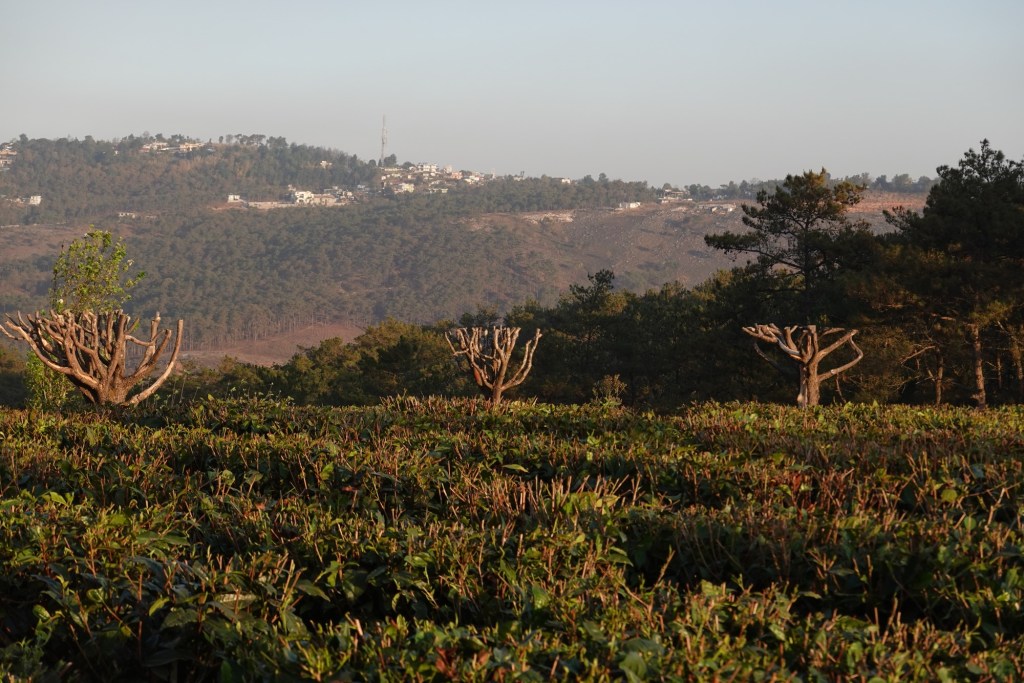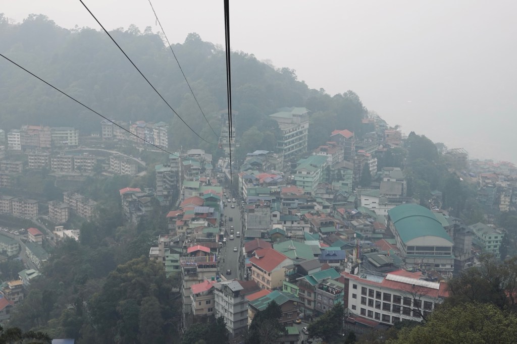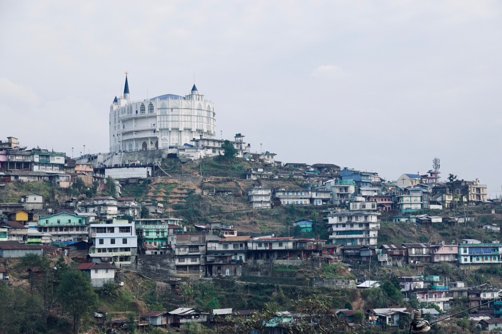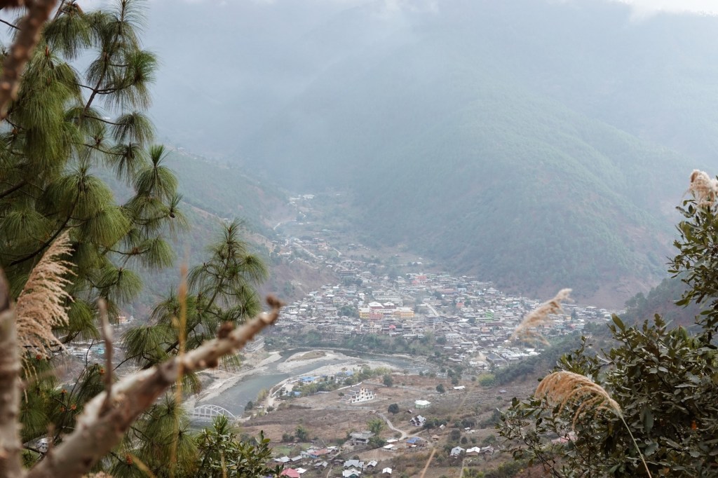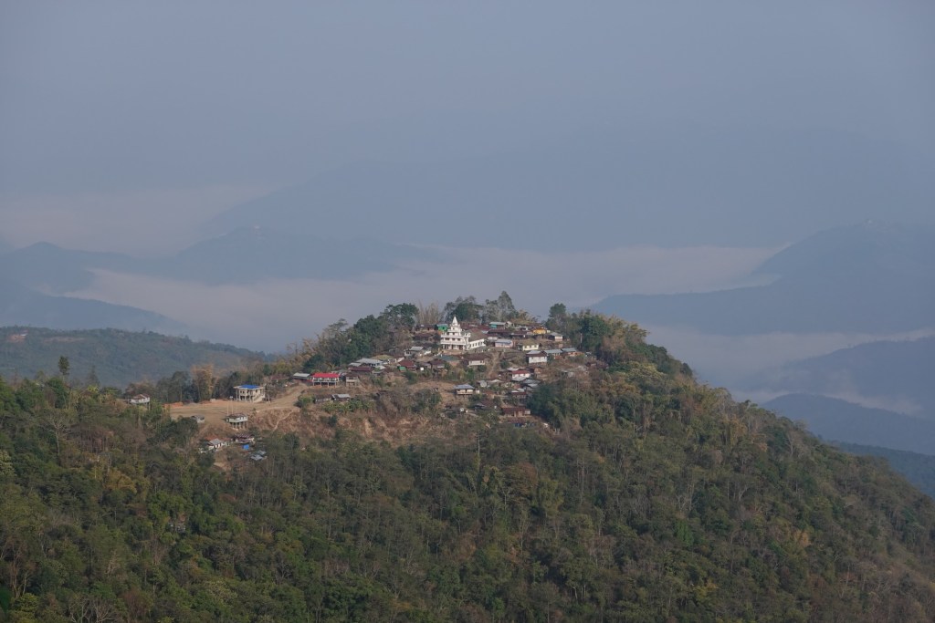 …. Happy to arrive in Ziro, we find a place where we can eat Dosas and a nice little cafe. Rain drizzles over the busy town. Honestly we didn’t expect Ziro to be that big. But our homestay is a in old Ziro, in a quiet area. New houses mixed with old traditional bamboo huts. Our host gives us a tour through the village and we ride to the lake and a viewpoint.