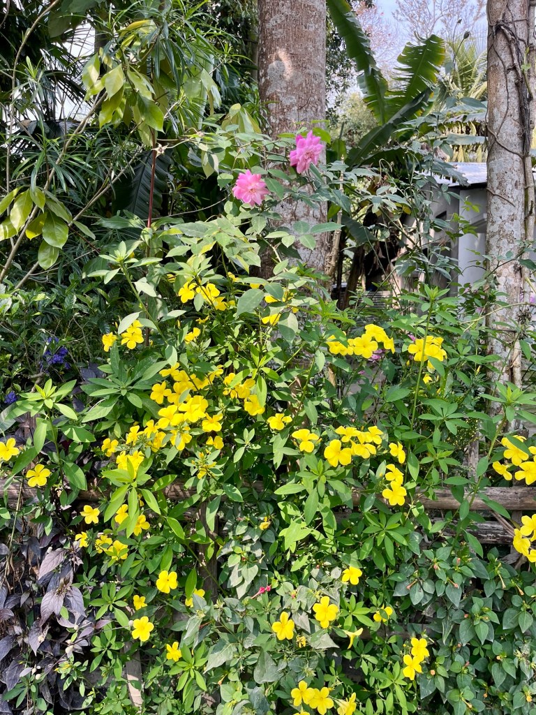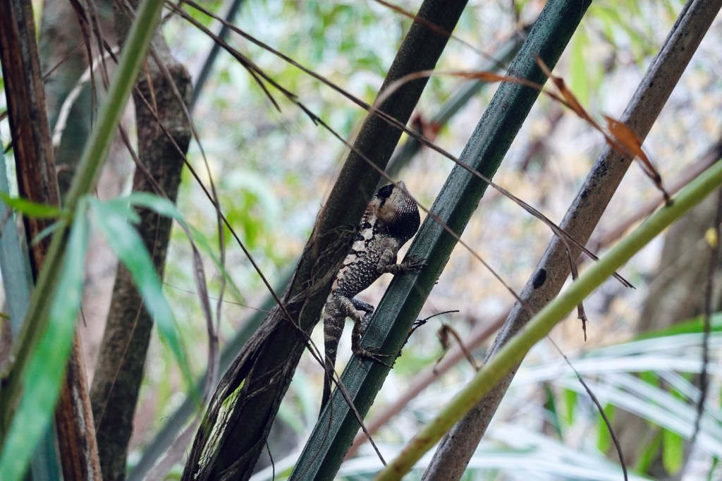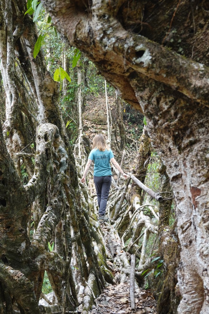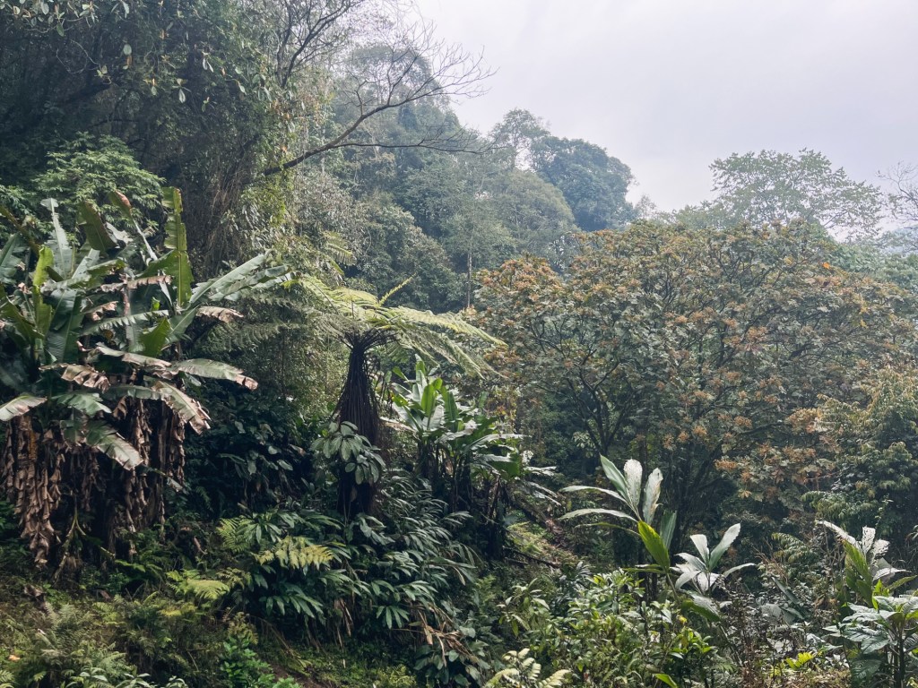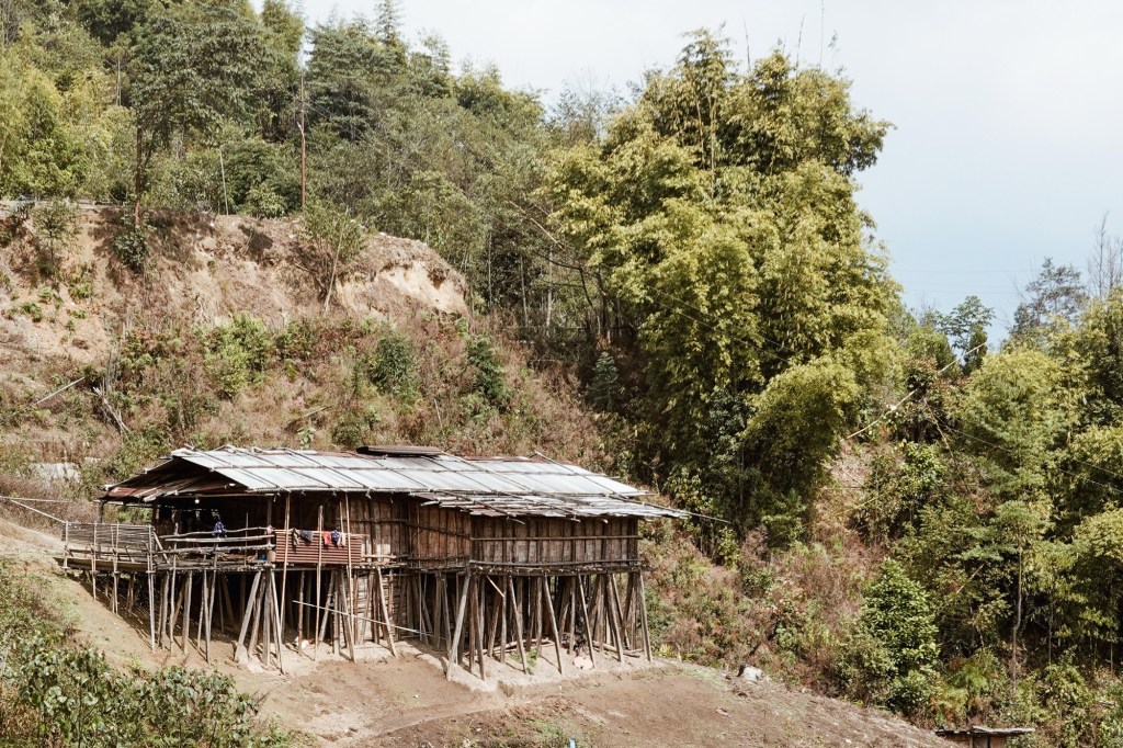 Bamboo Houses Spiderwebs squint towards the sunrays. The jungle lies on the steep slopes, overgrown with every kind of exotic green we like to have in our homes. It’s sounds – sometimes small, like those of a little mouse, sometime big like a marching band of elephants – indicating the vast life that must hide in it’s depths. We only get to encounter some birds, monkeys, a Himalayan squirrel and of course spiders and bugs.