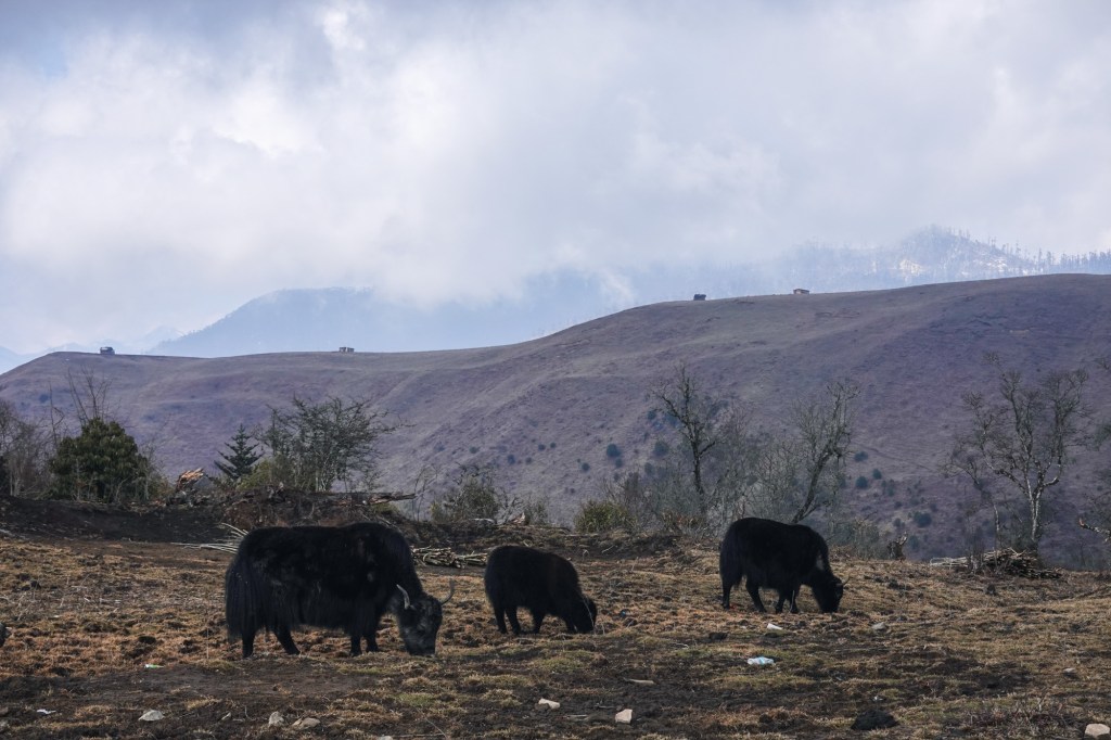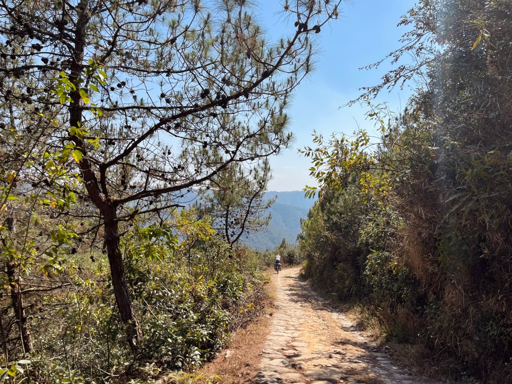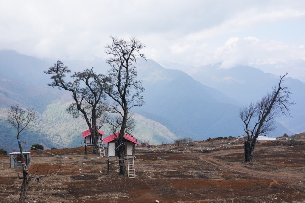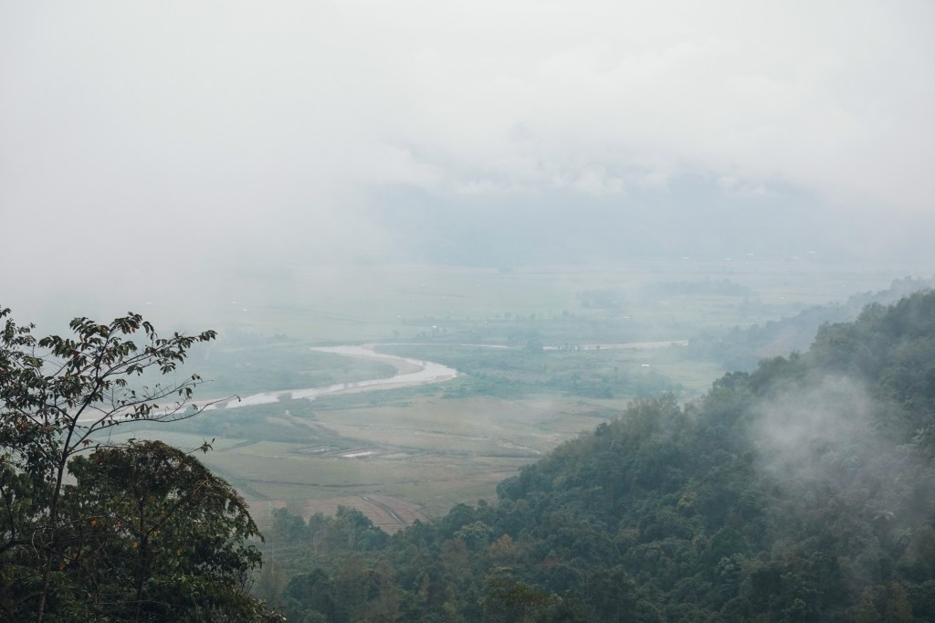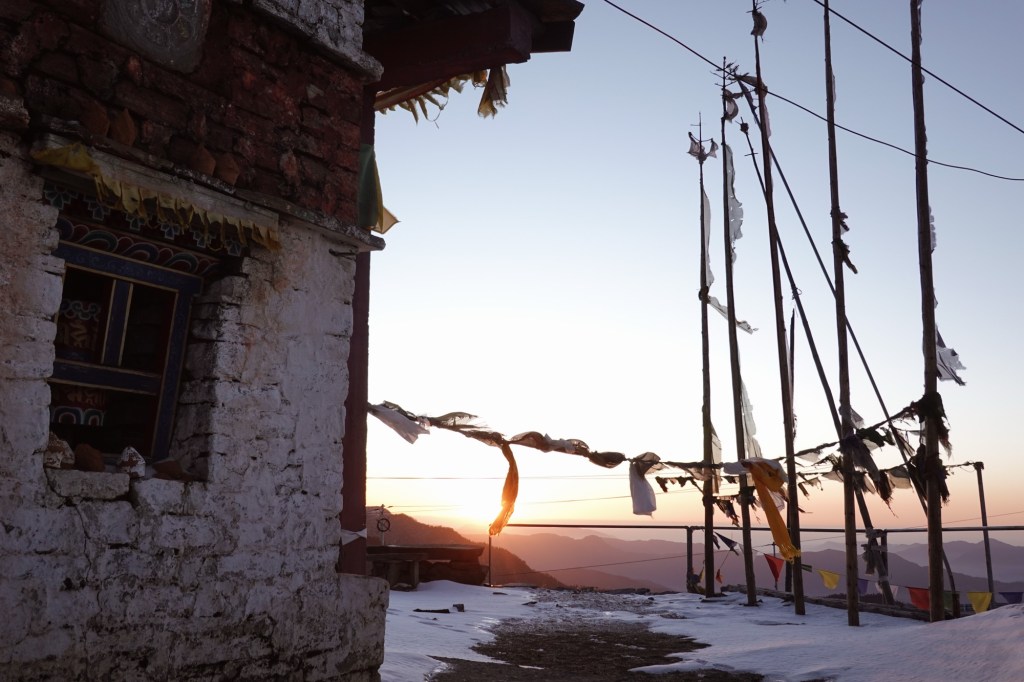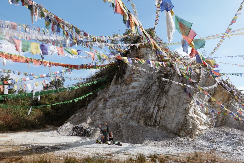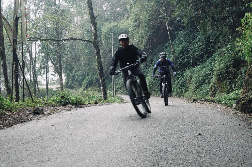Many more switchbacks curl over the hills. Up and down, pass by small villages and monasteries. Prayer flags swaying in the wind. The air is humid and misty. Everything feels calm and peaceful.