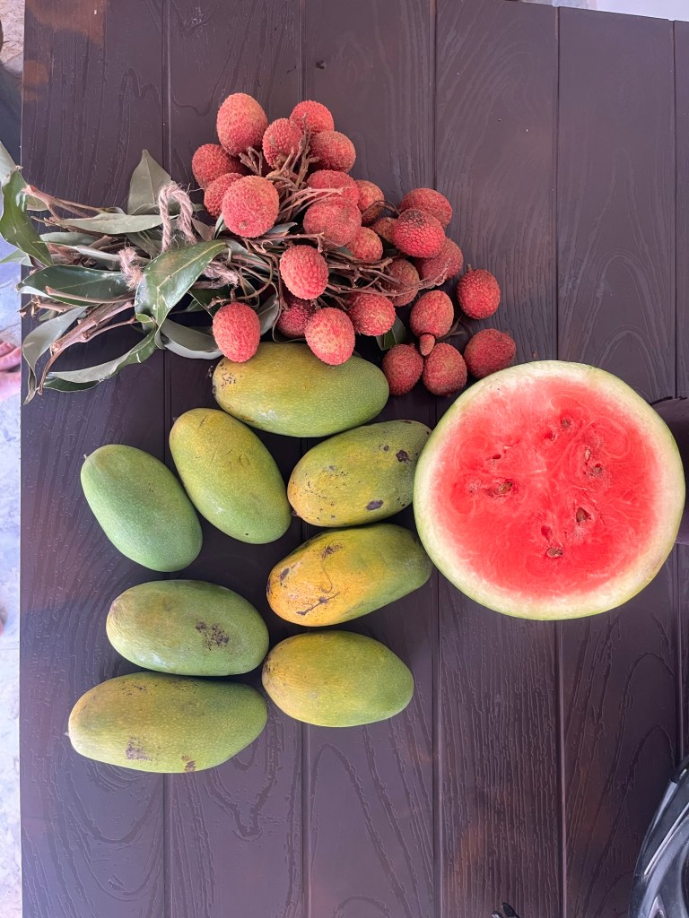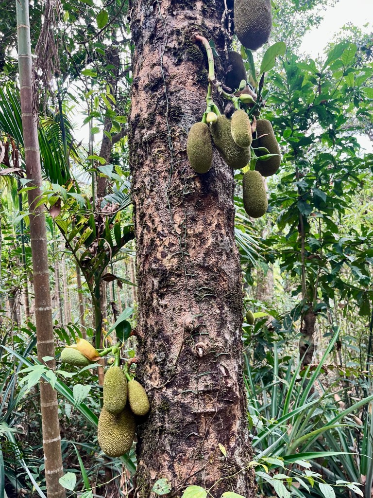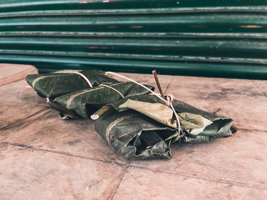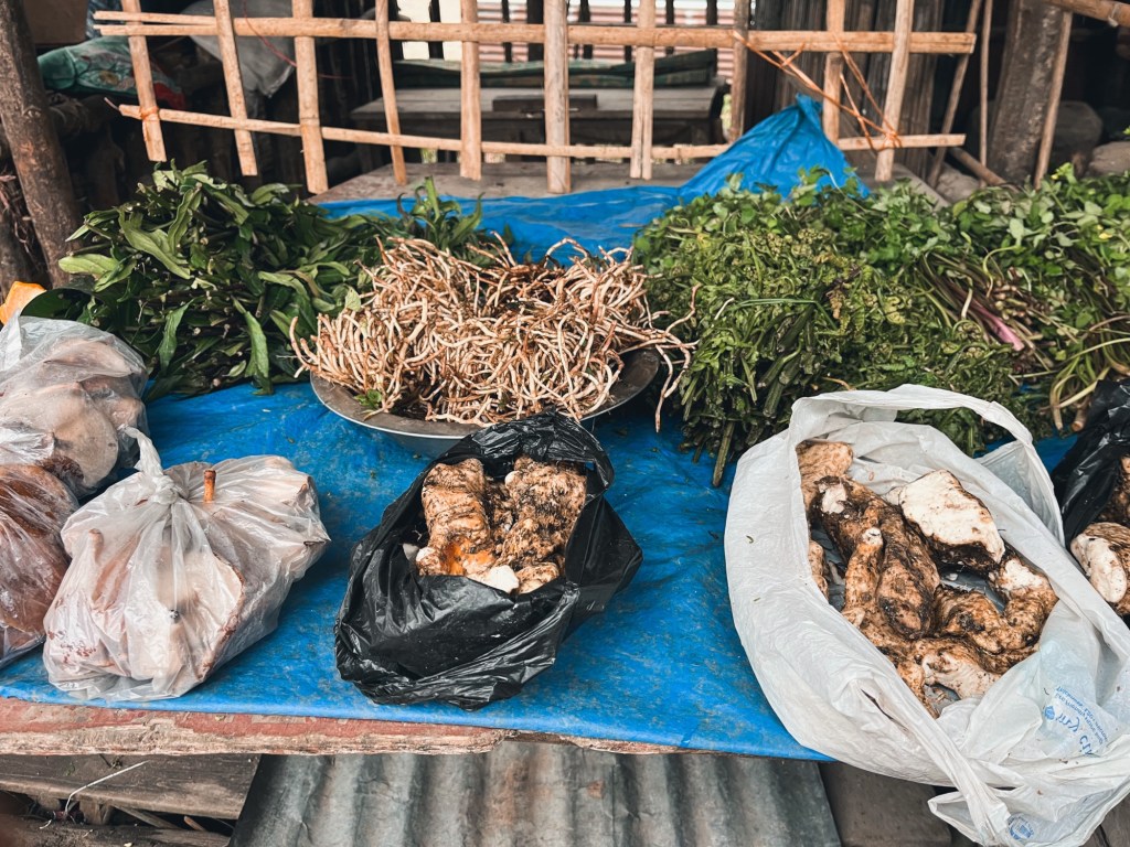 Flowy jungle rides The little markets offer a variety of local greens, eco- friendly packed in banana leafs. We cannot resist the baby pineapples on the road side. And local mushrooms to add a new recipe to our camping cook book!