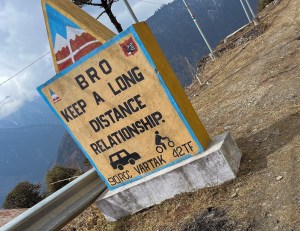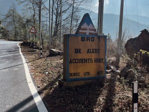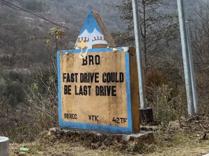 The BRO (the border road organisation of India) makes sure we have a safe, entertaining and very very smooth ride by placing signs with cheesy slogans on the side of the gentle roads. The gradient is never more than 7 % and so we roll up the hills with moderate heart rate and not so much effort.