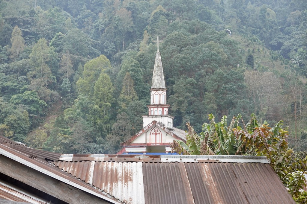 Church in Sagalee The green curtain of the forest opens the stage for a new chapter as a brown carpet unfolds infront of us: Mudmasters redefined! It is a beautiful road yet but is hard to cycle. It rained every night and so the roads turned into puddles of mud and deep thick sludge. We make slow progress as we climb one hill after another. Our km to elevation gain ratio is about 100km to +2000m. Four days already and the legs and the lungs feel tired! The humidity provokes a cough during the last days. And so we huff and puff – still smiling – through the beautiful landscape. Yet Ziro is coming closer as we pass through Pistana.