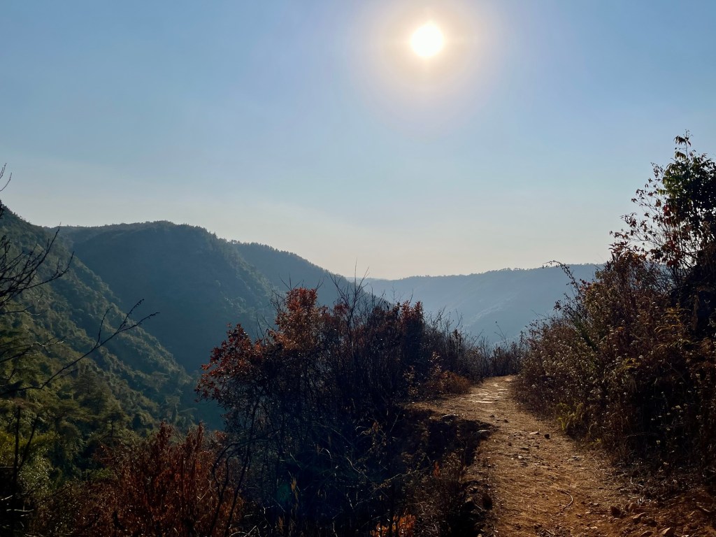 Our path A steep track leads to the villages Thrizini and Palizi. It is quiet and remote. A few motorbikes pass by, Mituns greet us from the side of the roads and friendly yet often confused faces of people collecting wood turn towards or shake their heads.