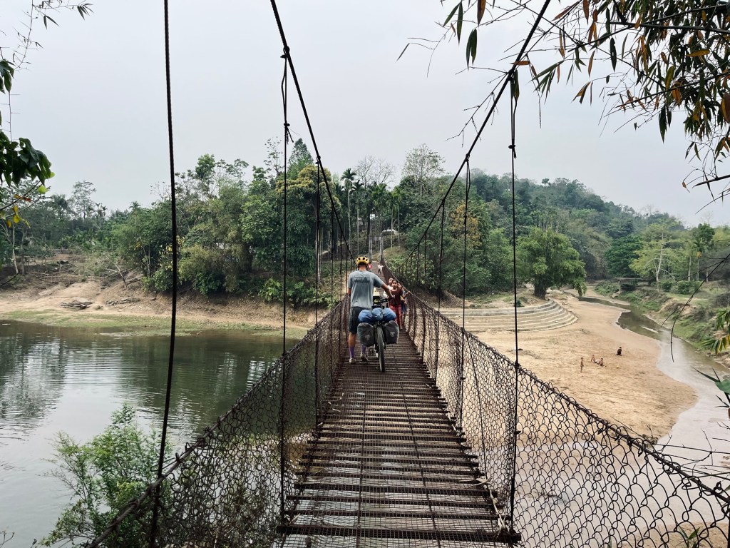 Ferry rides A few more Kilometers of dirt roads, one broken chain and a ferry ride later, we arrive in our little bamboo cottage. Route planing, research, washing, !drying! and relaxing is on our agenda here.