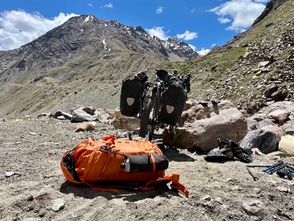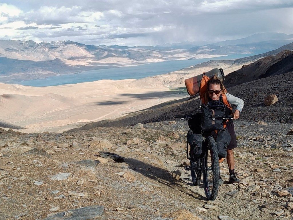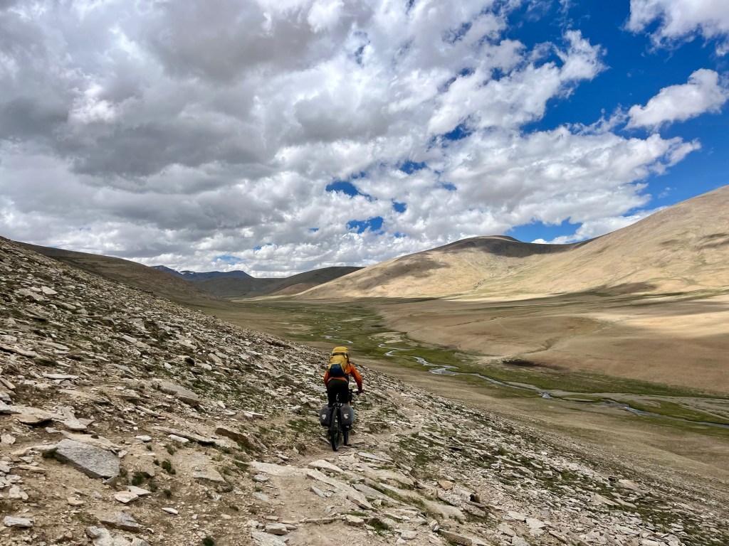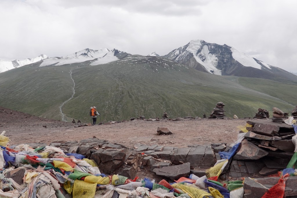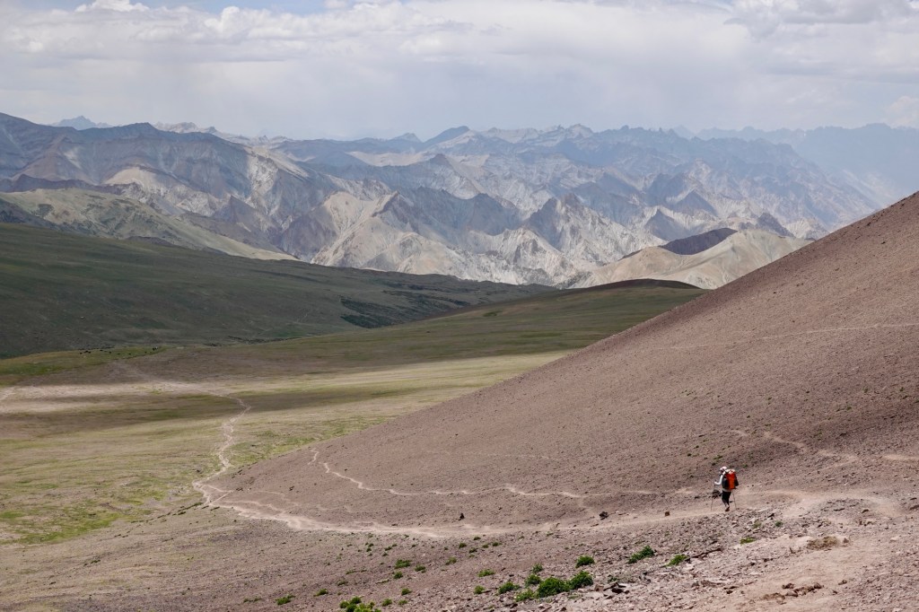 Pushing up to the pass with Tso Moriri in the back