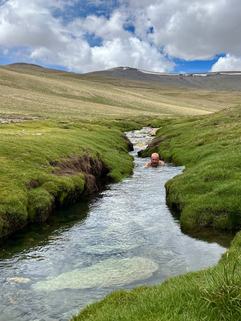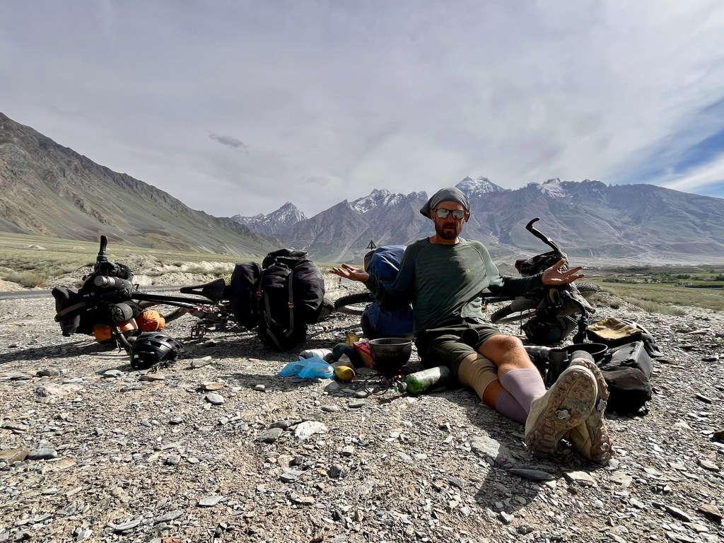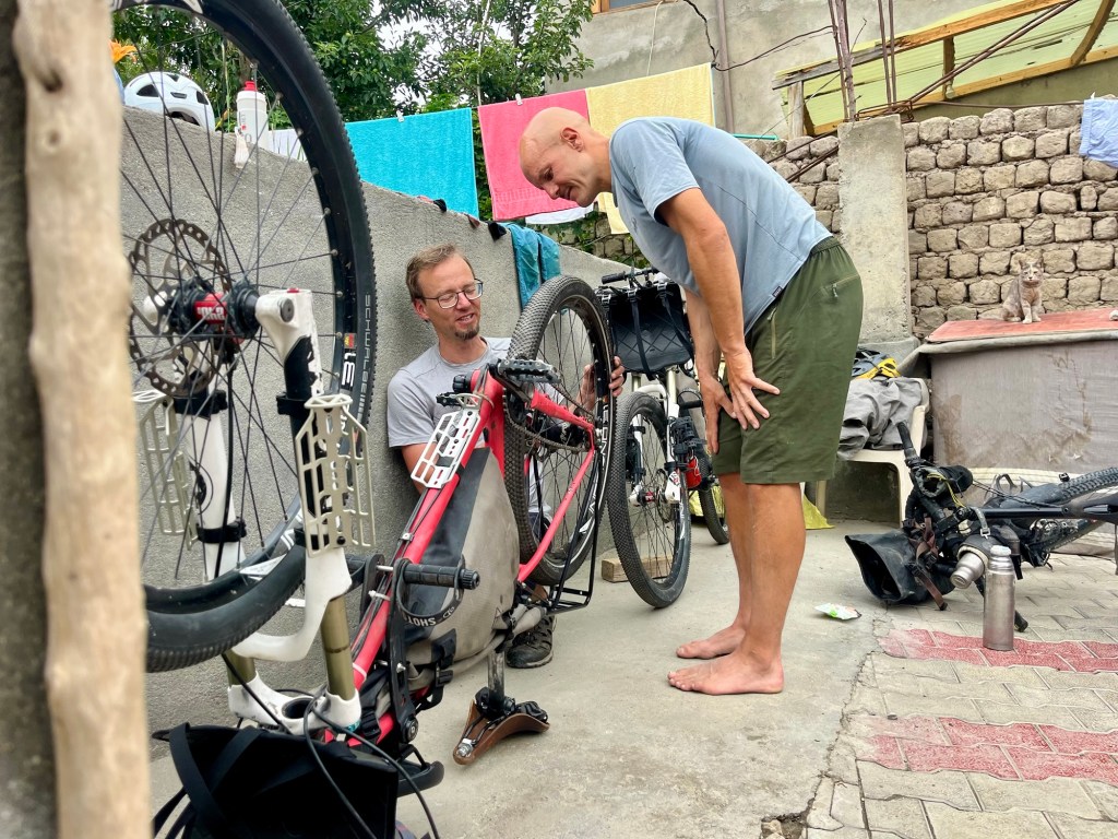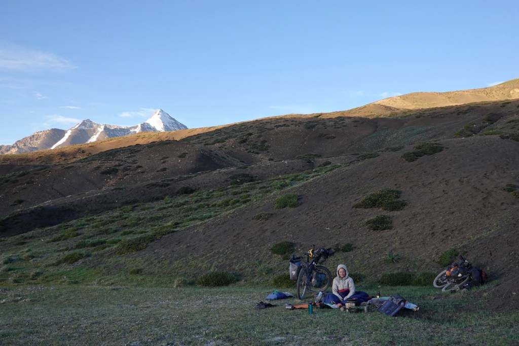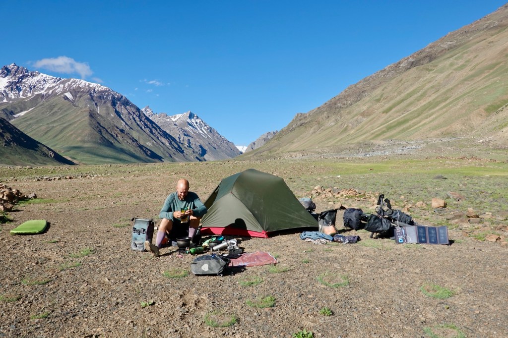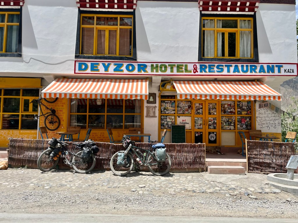 Midsummer a bivy In Kaza, we get to visit the hotel of a passionate cyclist who has explored many fascinating places, particularly in Africa. His spirit and experiences make it captivating to listen to his stories. While he operates one of the best-visited hotels in the region and boasts a well-run restaurant that serves delicious, locally-sourced cuisine, he still endeavors to keep the genuine spirit of slow traveling alive.