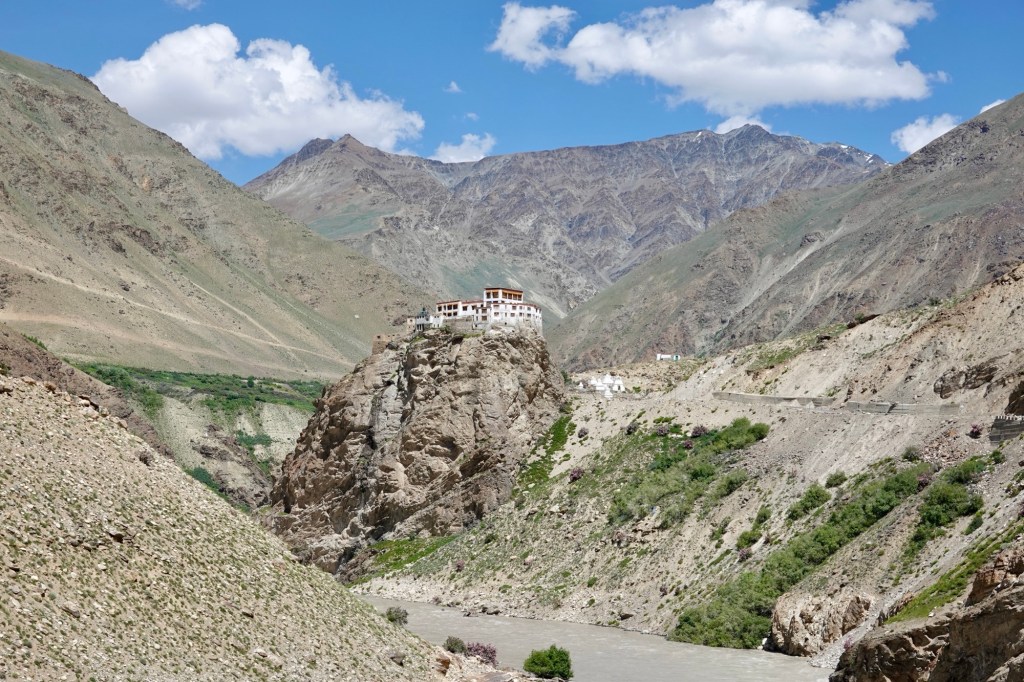 View A few 5000m passes later we are one a fun downhill towards the mighty Indus river, which we met in Pakistan last year alteady. On the way to Leh we stop at Alchi monastery, with impressive murals and wooden sculptures (no pictures allowed so you’ll have to believe us)!