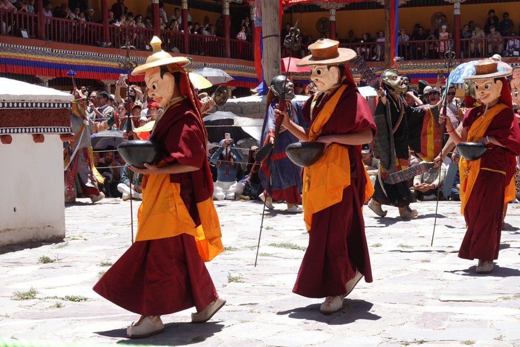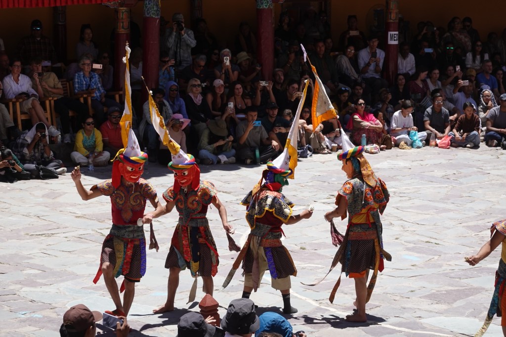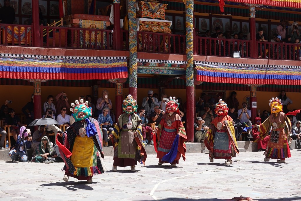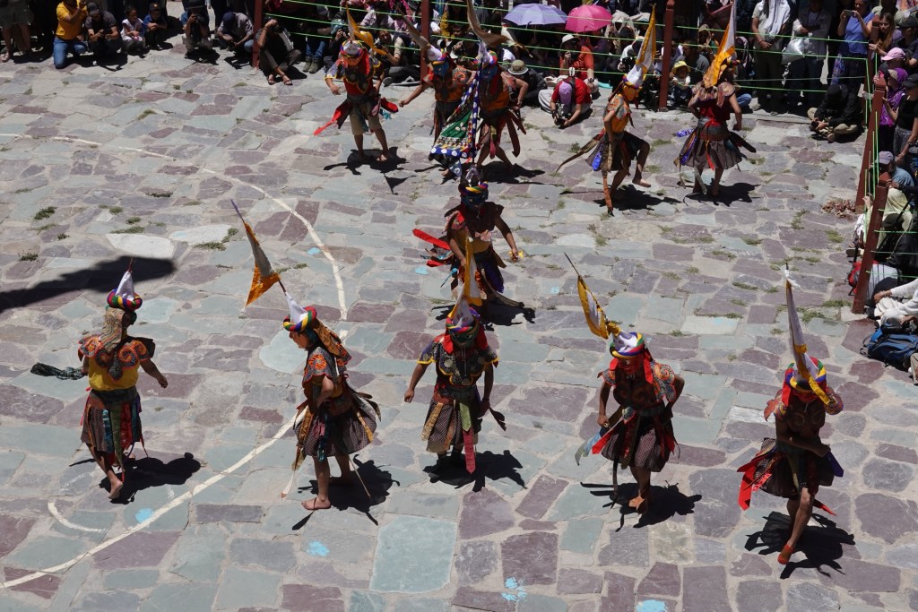 The colorful costumes, crafted masks and rhythmic music create an unqiue atmosphere under the burning Ladhaki sun.