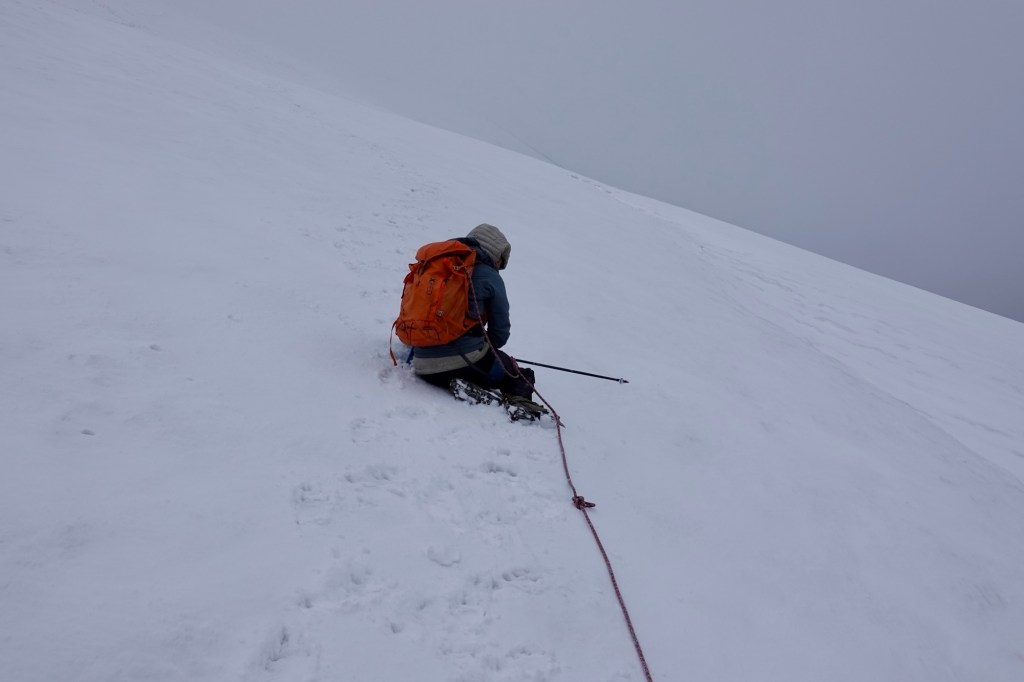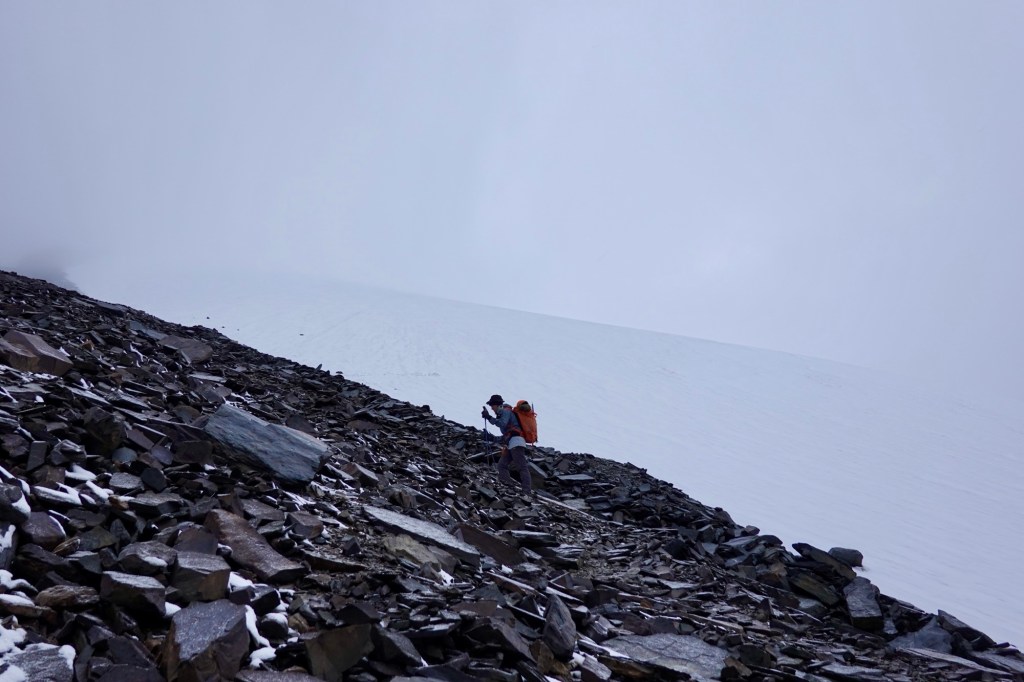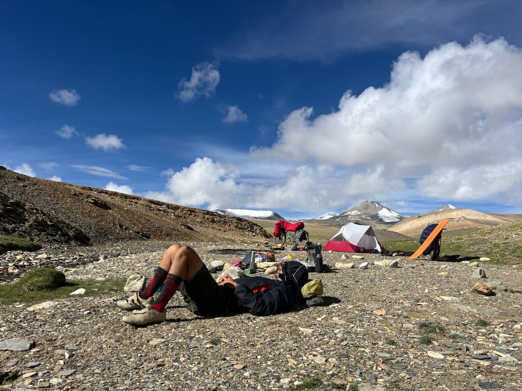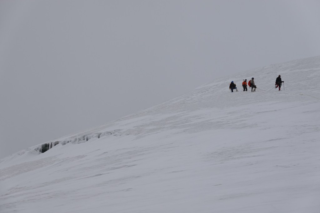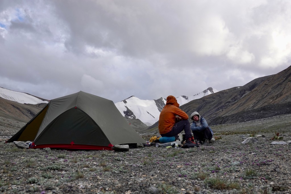 Peak!! Although we are met with no breathtaking views, we are thrilled to reach the peak – second 6000m peak, this time around as a team of two. As we make our way back to camp, thunder rumbles ominously in the distance, and we fortunately return just in time, to enjoy one sip of celebration coffee before retreating back to the tent because of a hailstorm.