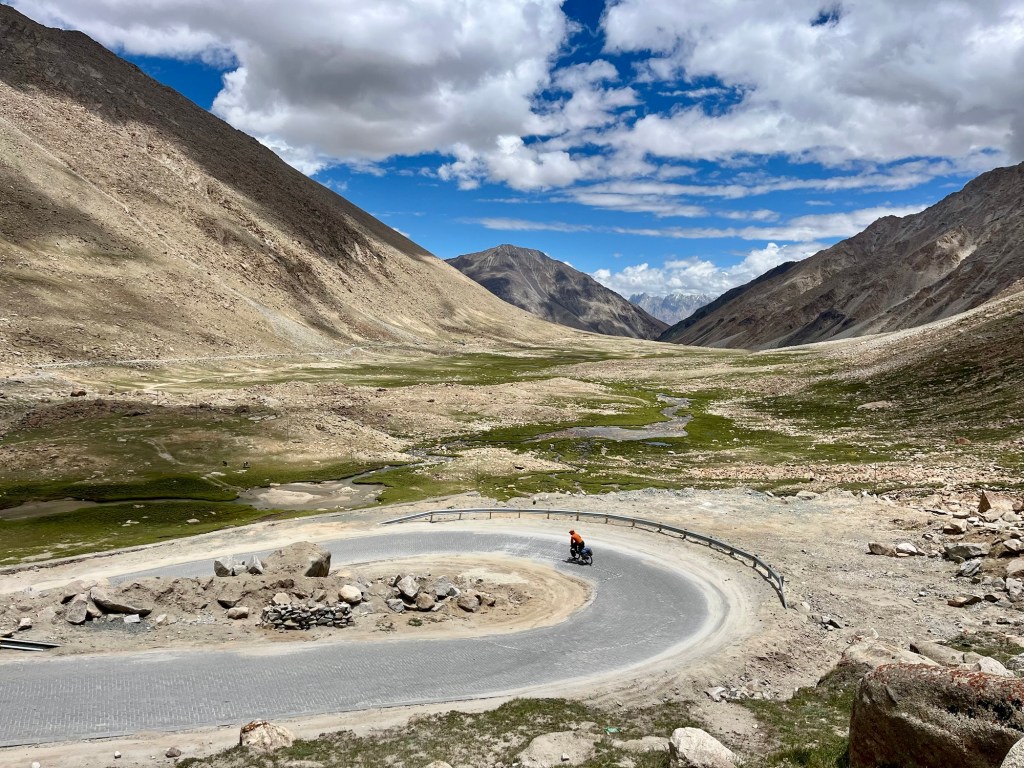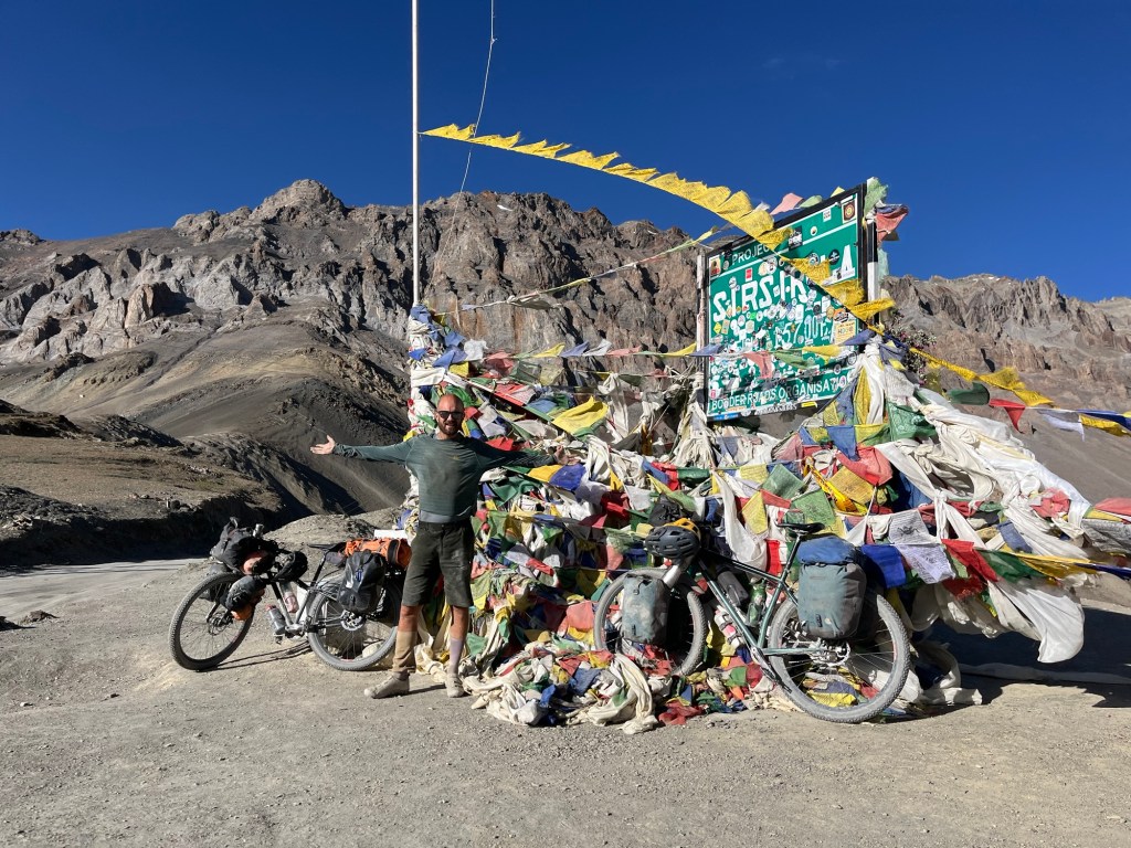 Thereafter, we make our way to Umling La, which is currently recognized as the highest motorable pass in the world, reaching an astonishing altitude of 5800 meters. The climb, surprisingly, feels easy and once we reach the top, we take a moment to reflect on the other “major” achievements of our tour so far. While Umling La holds the title of the highest pass we’ve conquered on a bicycle, we can’t shake the feeling that other passes, located in more remote and untouched areas, resonate with us on a deeper level, leaving lasting impressions and sensations.